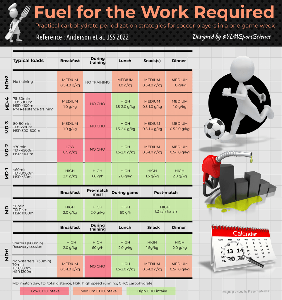 Fuel for the Work RequiredPractical carbohydrate periodization strategies for soccer players in a one game week